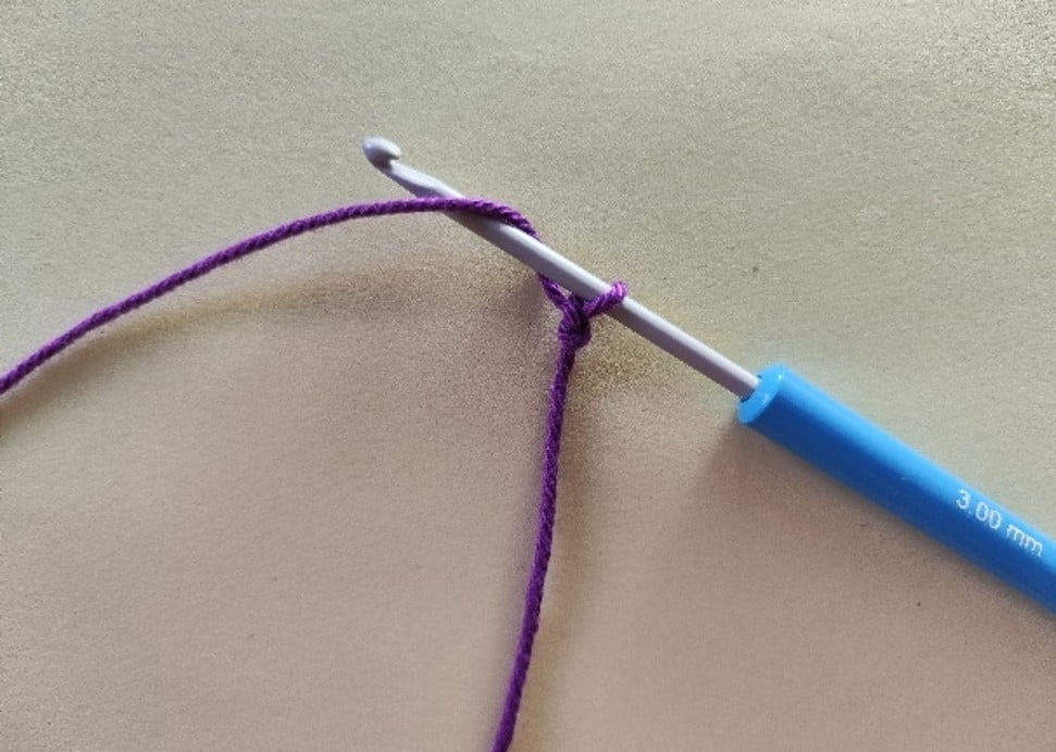 Наметни преждата и я прокарай през примката на куката. Повтори, за да направиш верижка, която по-късно ще се изплете в различни постове.