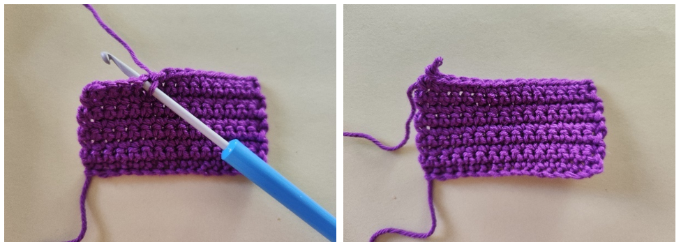 Направи една или повече верижни бримки в началото на реда според типа на постовете в реда. Обърни продукта в края на реда.