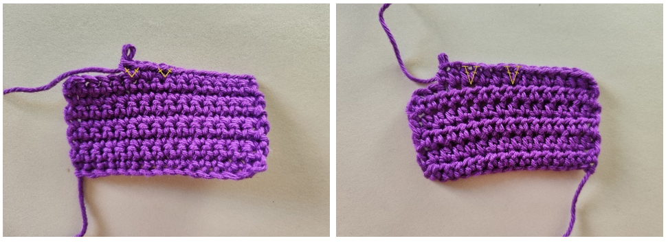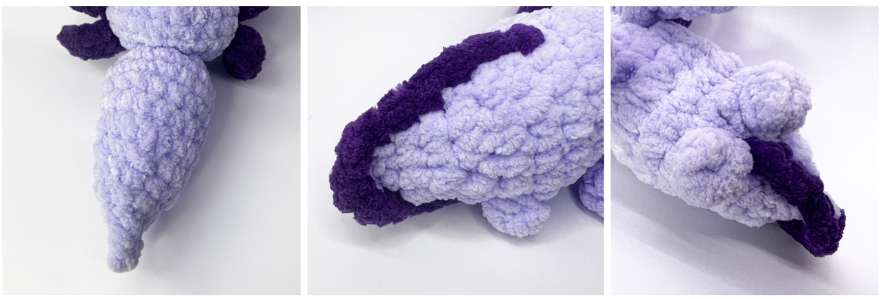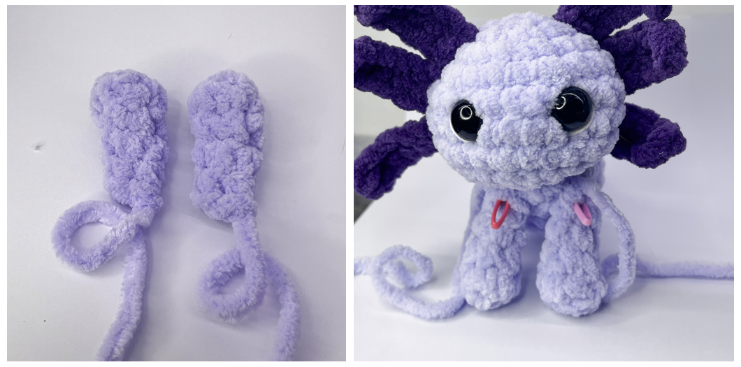 Съединяване: Изплети 2 sc заедно, SS и завърши. Маркирай с игли мястото, което да пришиеш към тялото.