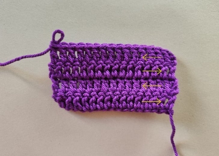 Изплети само зад предната половина на бримката - прехвърли куката под предната бримка от предишния ред.