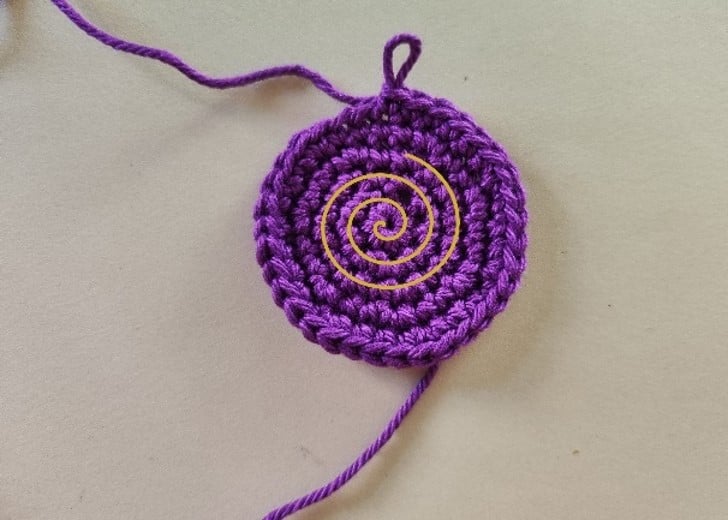 Известна като техниката амигуруми, тя се използва за плетене на играчки с нисък пълнеж в спирала със залепени бримки без свързване на редовете (кръгове). След това трябва да отбележиш първата или последната бримка в реда.