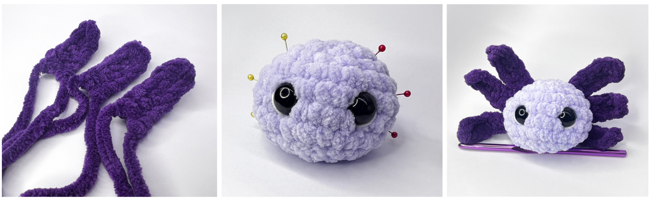 След като овладееш основите на плетенето на една кука, можеш да опитате проект, който комбинира всички техники, които си научил – играчка аксолотъл. Ето материалите и процедурата стъпка по стъпка:Материали и помощни средства
